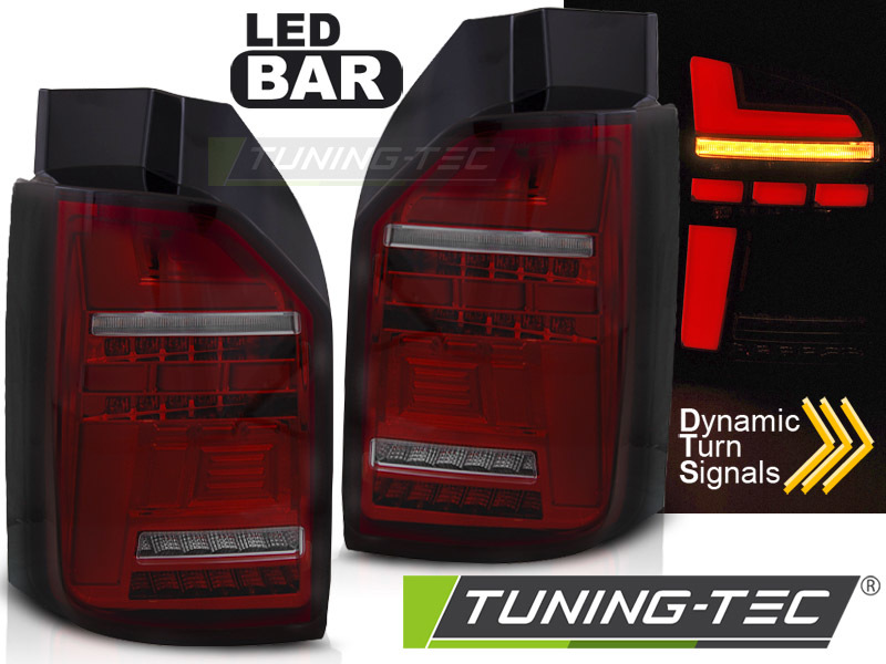 Die hochwertig verarbeiteten LED Bar Rückleuchten in rot getöntem Design verleihen dem Heck Ihres Fahrzeugs einen modernen und sportlichen Look. Speziell passend für VW T6.1 ab 2020 mit Heckklappe, sind diese Rückleuchten die perfekte Wahl, um sowohl Sicherheit als auch Stil zu verbessern. Sie zeichnen sich durch modernste LED-Technologie aus, inklusive integrierter dynamischer Blinker.
