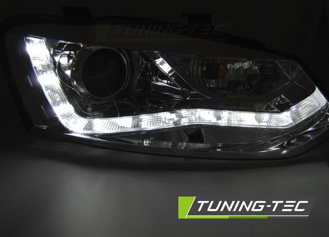 Diese hochwertigen Projektorscheinwerfer mit LED-Standlicht in edlem Chrom-Design verleihen Ihrem Fahrzeug eine moderne Optik und verbessern gleichzeitig die Lichtausbeute im Straßenverkehr. Die Scheinwerfer sind passend für VW Polo 6R (09/2009–03/2014) und wurden gemäß strengen Qualitätsstandards gefertigt. Dank integriertem E-Prüfzeichen (E4) sind sie für die Nutzung im Straßenverkehr zugelassen und erfordern keine zusätzliche Eintragung.