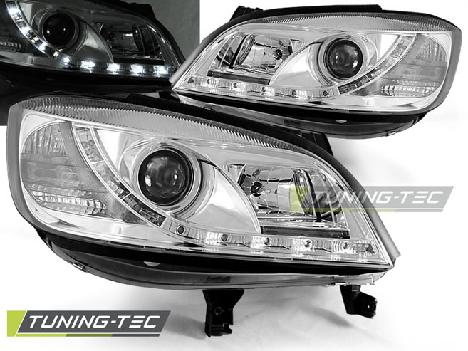Die hochwertigen Projektorscheinwerfer mit Chrome-Oberfläche und integriertem LED-Tagfahrlichtsystem verbessern nicht nur das Erscheinungsbild Ihres Fahrzeugs, sondern auch die Fahrzeugsicherheit. Diese Scheinwerfer sind speziell passend für Opel Zafira 04.99-06.05 entwickelt und zeichnen sich durch eine präzise Lichtverteilung und klare Leuchtkraft aus. Dank der integrierten LED-Technologie profitieren Sie von einer modernen Lichtsignatur und langer Lebensdauer. Das Set wird paarweise (links & rechts) geliefert und besitzt ein gültiges E-Prüfzeichen, wodurch eine Nutzung im Straßenverkehr zulässig ist. Die elektrische Leuchtweitenregulierung wird unterstützt; der Stellmotor ist jedoch nicht im Lieferumfang enthalten.