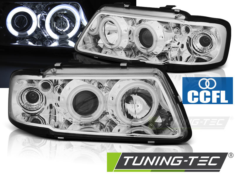 Diese hochwertigen Projektorscheinwerfer mit CCFL Dual Halo Angel Eyes verleihen Ihrem Fahrzeug ein modernes, markantes Erscheinungsbild und verbessern gleichzeitig die Lichtausbeute. Das Scheinwerfer-Set in Chromoptik ist speziell passend für Audi A3 8L entwickelt und sorgt für eine sportliche Optik kombiniert mit zuverlässiger Funktion.