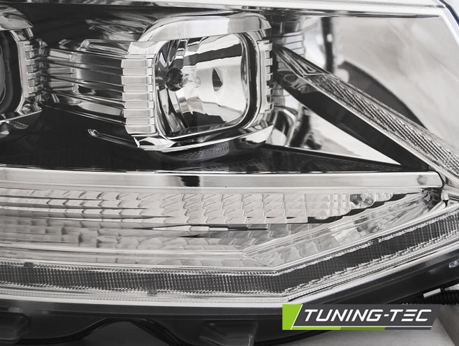 Die True DRL Projektorscheinwerfer in Chromausführung verleihen Ihrem Fahrzeug eine moderne Optik und sorgen gleichzeitig für hervorragende Ausleuchtung der Fahrbahn. Dank der integrierten LED-Tagfahrlichter (DRL) wird die Sichtbarkeit im Straßenverkehr deutlich verbessert, was zu mehr Sicherheit im Alltag beiträgt. Diese Scheinwerfer sind vollständig fahrzeugspezifisch entwickelt und bieten eine perfekte Passform passend für VW T6 (Baujahr 2015–2019). Das langlebige Gehäuse in Chrom-Optik sorgt für einen sportlich-eleganten Look, während die hochwertige Elektronik eine zuverlässige Funktion und Langlebigkeit garantiert. Die Leuchtweitenregulierung erfolgt elektrisch, und alle relevanten Leuchtfunktionen – Abblendlicht, Fernlicht, Blinker, Standlicht und Tagfahrlicht – sind optimal integriert. Der Artikel ist selbstverständlich mit E-Prüfzeichen E6 und ECE-R87 zugelassen und somit eintragungsfrei.