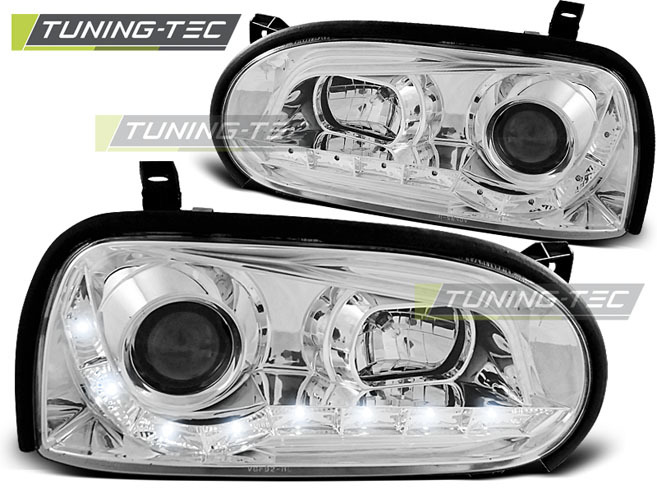 Diese hochwertigen Projektorscheinwerfer in Chromoptik bieten dank integrierter LED-Technologie ein modernes Tageslichtdesign und verbessern die Sichtbarkeit auf der Straße. Das Set aus linker und rechter Einheit ist vollständig neu und wird mit H1-Leuchtmitteln für Abblend- und Fernlicht geliefert. Durch das vorhandene E-Prüfzeichen sind die Scheinwerfer für den Straßenverkehr zugelassen und können ohne Eintragung verwendet werden. Die Leuchtweitenregulierung ist elektrisch vorbereitet; bitte beachten Sie, dass der Stellmotor separat bestellt werden muss. Durch die Kombination aus sportlichem Design und präziser Lichtverteilung ist dieses Scheinwerfer-Set eine ideale Wahl für alle, die Ihren VW Golf 3 optisch und funktional aufwerten möchten.