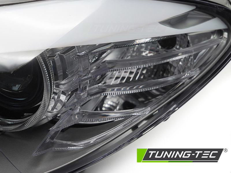 Dieser hochwertige Scheinwerfer für die linke Seite ist perfekt passend für BMW F10 und F11 Modelle der Baujahre 2010 bis 2013. Er überzeugt durch moderne LED-Technologie für Stand- und Tagfahrlicht und ist als vollwertiger Ersatz für den originalen Halogenscheinwerfer konzipiert. Dank der E4-Zulassung ist dieser Scheinwerfer für den Straßenverkehr zugelassen und bietet eine einfache Montage dank seriennaher Bauform und elektrischer Leuchtweitenregulierung mit integriertem Stellmotor.