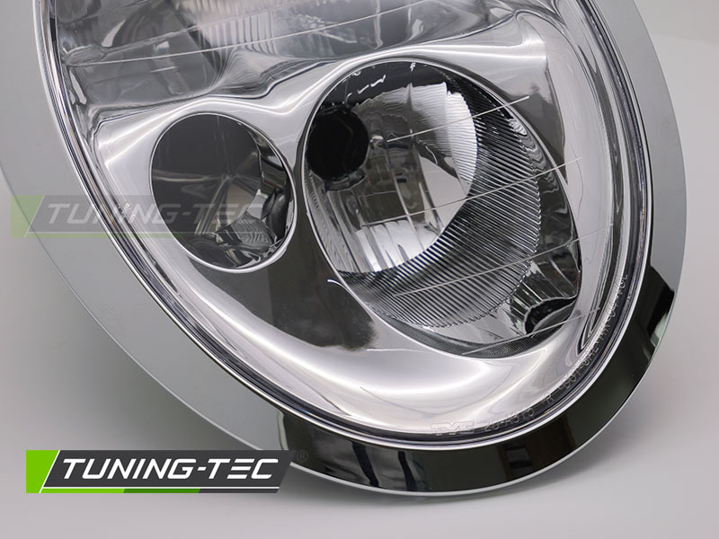 Der hochwertige Scheinwerfer in chrom für die rechte Seite ist passend für Mini Cooper R50 und R53 Modelle aus den Baujahren 2001 bis 2004. Das Bauteil ist E13-geprüft und somit für den Straßenverkehr zugelassen. Als Ersatz für den originalen Halogenscheinwerfer bietet dieser Scheinwerfer eine präzise Lichtverteilung und ein modernes Design, das die Optik Ihres Fahrzeugs aufwertet.