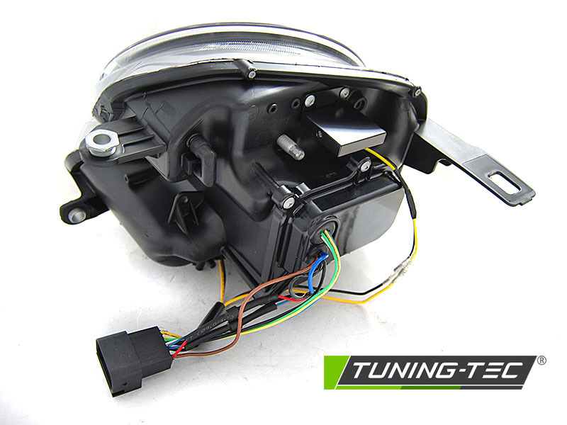 Die hochwertigen schwarzen Tube Light LED Scheinwerfer passend für BMW Mini (Cooper) 06–14 verleihen Ihrem Fahrzeug eine moderne und dynamische Optik. Diese Projektorscheinwerfer kombinieren LED-Technologie für das Stand- und Blinkerlicht mit einer präzisen Hi-Low-Projektorlinse für Abblend- und Fernlicht. Durch die elektrische Leuchtweitenregulierung mit eingebautem Stellmotor wird eine optimale Ausleuchtung der Fahrbahn gewährleistet.