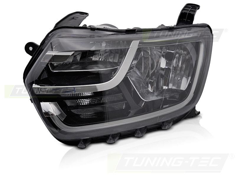 Der schwarze linke Scheinwerfer bietet eine hochwertige Beleuchtungslösung passend für Dacia Duster II (Baujahr 2017–2021). Der E4-geprüfte Scheinwerfer ist für den Straßenverkehr zugelassen und dient als zuverlässiger Ersatz für den originalen Halogenscheinwerfer. Das verbaute LED-Standlicht verleiht Ihrem Fahrzeug eine moderne Lichtsignatur. Blinkerlampe: PY21W. Das Abblendlicht nutzt eine H7-Birne (nicht im Lieferumfang enthalten), das Fernlicht eine H1-Birne (nicht im Lieferumfang enthalten). Die elektrische Leuchtweitenregulierung ist kompatibel mit der werkseitigen Ausstattung. Dieses Produkt ist kein Originalteil des Fahrzeugherstellers, lässt sich jedoch passgenau montieren und harmoniert perfekt mit dem Fahrzeugdesign.