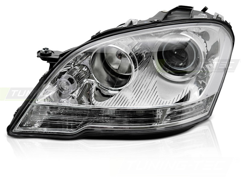 Der hochwertige Scheinwerfer in Chrom-Ausführung links passend für Mercedes W164 09–11 überzeugt durch modernes Design und präzise Passform. Dank E-Kennzeichnung (E13) ist der Scheinwerfer vollständig für den Straßenverkehr zugelassen. Dieses Modell ersetzt den originalen Halogenscheinwerfer und sorgt mit seiner klaren Optik für verbesserte Lichtleistung und ein frisches Erscheinungsbild Ihres Fahrzeugs.