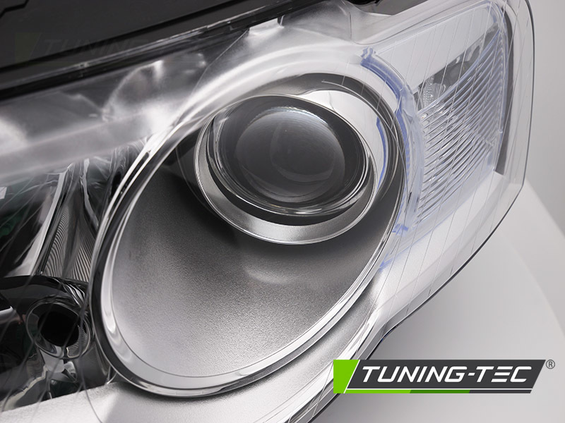 Der hochwertige Projektorscheinwerfer in Chrom-Optik ist perfekt passend für VW Passat B6 (3C) der Baujahre 2005 bis 2010. Er ersetzt den originalen Halogenscheinwerfer auf der linken Seite und überzeugt durch eine klare Lichtverteilung sowie eine moderne Optik. Der Scheinwerfer verfügt über eine E9-Zulassung und ist somit für den Straßenverkehr zugelassen. Die elektrische Leuchtweitenregulierung ist bereits integriert, wodurch der Einbau besonders einfach gelingt. Das Produkt ist kein Originalteil des Fahrzeugherstellers, passt jedoch präzise zum genannten Fahrzeugmodell und sorgt für eine ansprechende optische Aufwertung.