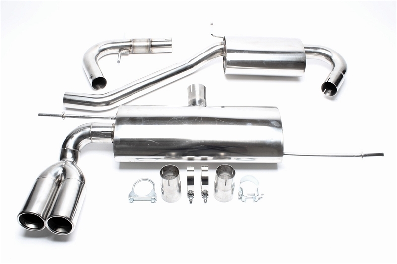 Die beiden Endrohre mit 76 mm Durchmesser sind rund und gebördelt und werden optisch ansprechend unterhalb der Stoßstange positioniert. Die Anlage verfügt über eine EG-Genehmigung (e1-0310528/e1-0310530) und kann somit ohne zusätzliche Eintragung verwendet werden. Ideal für alle, die sportliche Optik, kernigen Sound und geprüfte Qualität in einem Produkt suchen.
