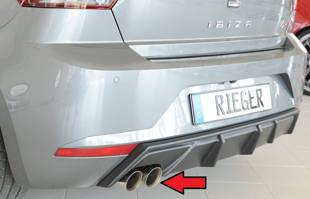 Die Friedrich Gruppe A Anlage ist ein hochwertiges Edelstahl-Auspuffsystem passend für Seat Ibiza (KJ) inkl. FR, 1.5l TSI 110kW. Diese Anlage überzeugt durch ihr sportliches Sounddesign und eine präzise Verarbeitung nach höchsten Qualitätsstandards. Das 63,5mm Catback-System mit der Endrohrvariante -89 (links) bietet zwei Endrohre in 76mm rund, abgeschrägt und in der Länge versetzt. Dank der EG-Betriebserlaubnis ist kein zusätzlicher Eintrag in die Fahrzeugpapiere notwendig. Das System ist speziell für Fahrzeuge mit RIEGER Heckeinsatz ausgelegt und sorgt für eine deutliche Aufwertung von Klang und Optik Ihres Fahrzeugs.