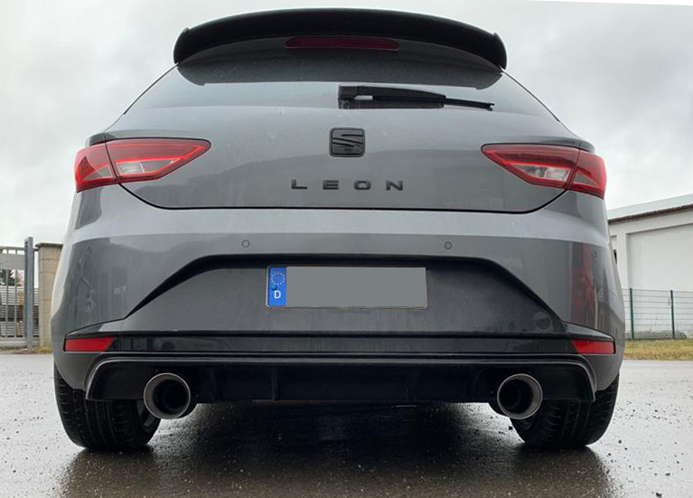 Der FOX Endschalldämpfer passend für Seat Leon 5F wurde speziell für den Einsatz mit der Rieger Stoßstange (Art.-Nr. 00088089) entwickelt. Hergestellt aus hochwertigem Edelstahl bietet dieser Sport-Endschalldämpfer eine langlebige und korrosionsbeständige Lösung für anspruchsvolle Fahrerinnen und Fahrer. Die handpolierten Endrohre in glänzendem Silber verleihen Ihrem Fahrzeug eine sportlich-exklusive Optik. Mit einem Rohrquerschnitt von 70 mm und beidseitigen 1x100 mm Endrohren sorgt der FOX Endschalldämpfer für einen kernigen Klang und optimierte Abgasführung. Dank der ECE-Zulassung kann die Anlage ohne zusätzliche Eintragungen im öffentlichen Straßenverkehr betrieben werden.