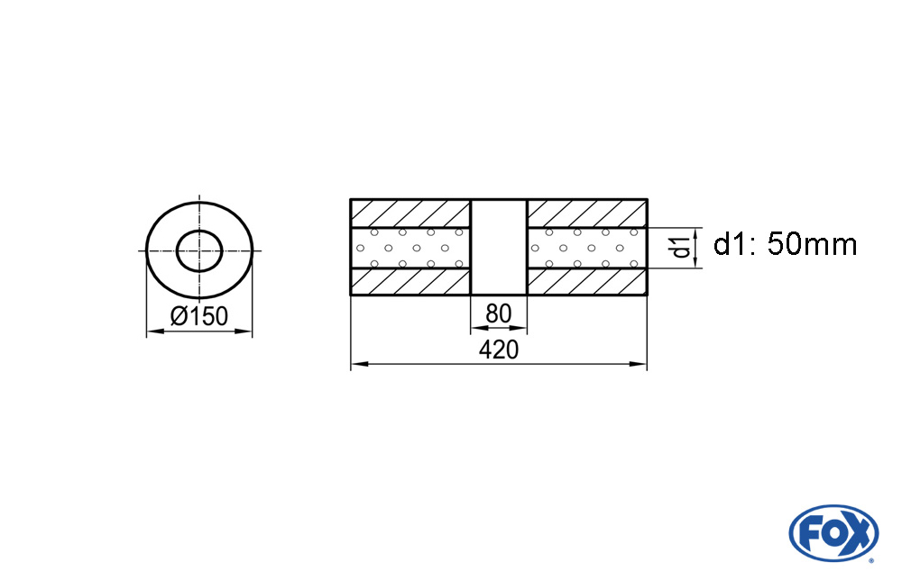 - Maße: Ø150 mm Außendurchmesser, Länge 420 mm, d1Ø 50 mm