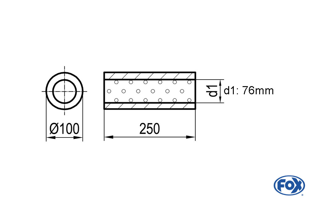 - 1x FOX Uni-Schalldämpfer rund ohne Stutzen Ø100mm, Länge 250mm