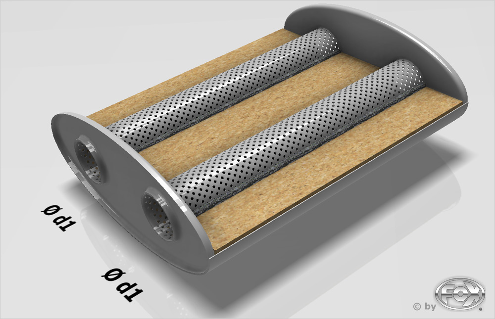 - 1x FOX Uni-Schalldämpfer oval zweiflutig Edelstahl 356x160mm