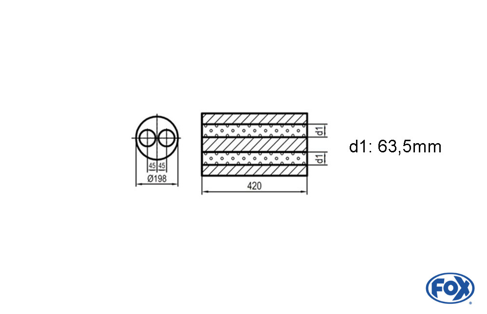 Der FOX Uni-Schalldämpfer rund zweiflutig mit Ø198mm ist eine hochwertige Lösung aus robustem Edelstahl für universelle Anwendungen im Abgasanlagenbau. Mit einer Gesamtlänge von 420mm und einem Eingangsrohrdurchmesser von Ø63,5mm bietet er eine ideale Kombination aus Performance, Langlebigkeit und ansprechender Optik. Durch die präzise Verarbeitung und das zweiflutig ausgeführte Design wird ein effizienter Abgasdurchfluss sowie ein sportlich-sonorer Klangcharakter erreicht.