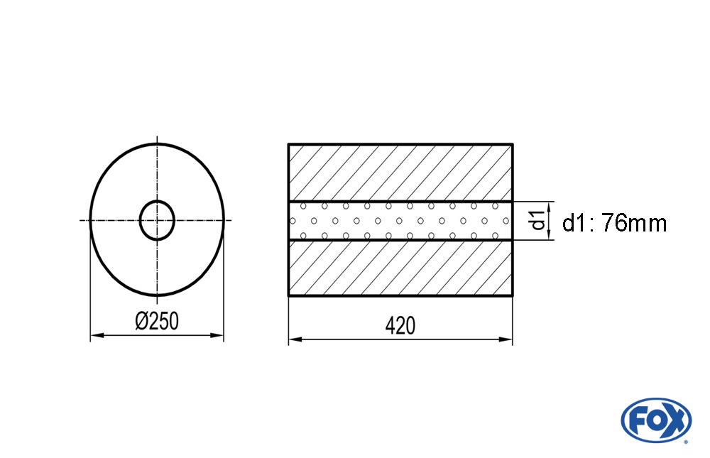 - 1x FOX Uni-Schalldämpfer rund ohne Stutzen Ø 250 mm, Länge 420 mm