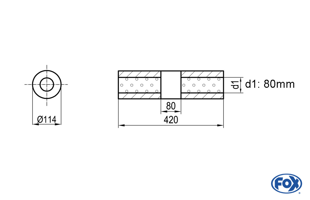 Weiterführende Links zu "FOX Uni-Schalldämpfer rund Ø114mm Edelstahl Länge 420mm ohne Stutzen mit Kammer"