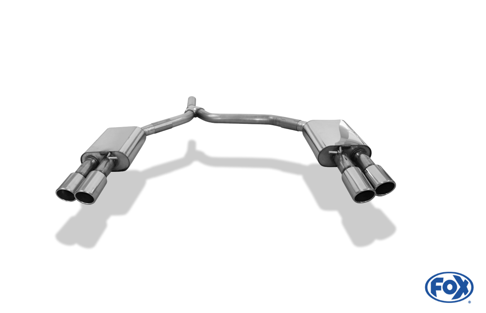 Der hochwertige FOX Endschalldämpfer aus Edelstahl ist speziell passend für Audi A6 4G 2,0l TDI entwickelt und überzeugt durch exzellente Verarbeitung und optimale Passgenauigkeit. Dank der zweiflutig geführten Endrohre in glänzender Silberoptik verleiht dieser Auspuff Ihrem Fahrzeug eine sportlich-markante Optik. Jedes Endrohr wird von Hand auf Hochglanz poliert, was für eine edle Oberfläche und eine langlebige Qualität sorgt.