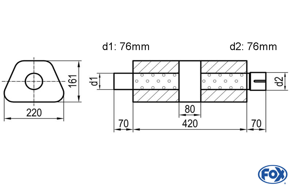- 1x FOX Uni-Schalldämpfer trapez mit Kammer und Stutzen 220x161mm