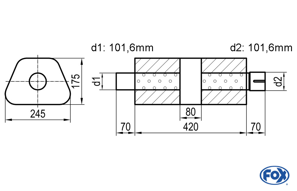 Produktinformationen "FOX Uni-Schalldämpfer trapez mit Kammer + Stutzen aus Edelstahl"