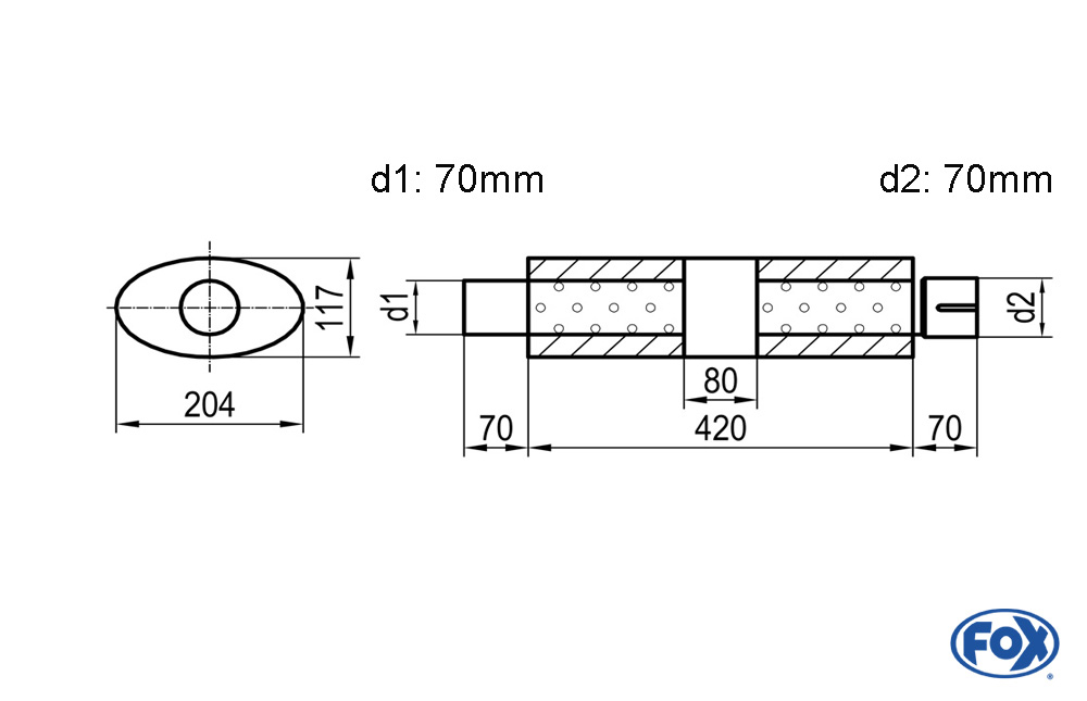 Der FOX Uni-Schalldämpfer Oval aus Edelstahl überzeugt durch seine hochwertige Verarbeitung und universelle Einsetzbarkeit. Mit seinen kompakten Maßen von 204x117 mm und einer Gesamtlänge von 420 mm bietet er optimale Schalldämpfung bei verschiedensten Projekten im Auspuffbau. Durch den ovalen Aufbau mit Kammer und Stutzen erzielt der Dämpfer eine harmonische Klangcharakteristik, die Performance und Sound perfekt miteinander verbindet.
