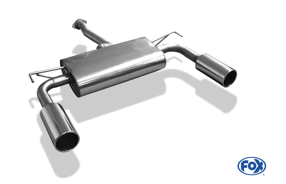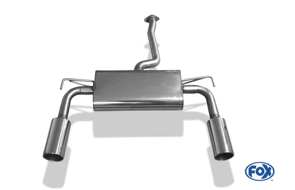 - 1x FOX Edelstahl-Endschalldämpfer (Ausgang rechts/links – 1x100 Typ 12)