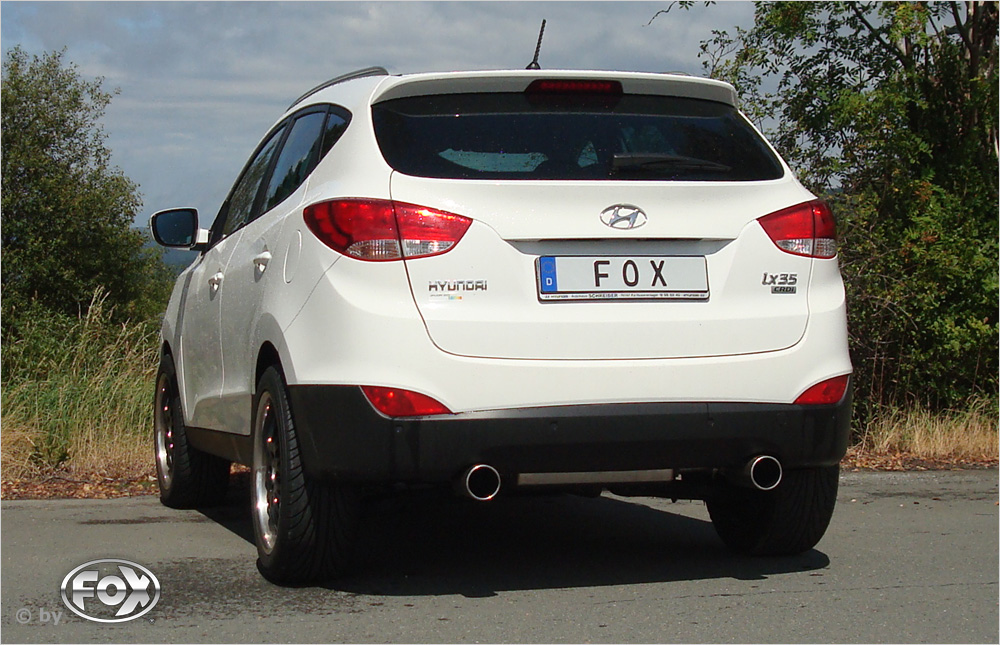Der FOX Edelstahl-Endschalldämpfer passend für Hyundai ix35 ab 2010 überzeugt durch hervorragende Verarbeitungsqualität und sportlich-dynamischen Sound. Gefertigt aus hochwertigem Edelstahl, sorgt er für eine lange Lebensdauer, Korrosionsbeständigkeit und eine ansprechende Optik. Die handpolierten, silberglänzenden Endrohre (Ausgang rechts/links – 1x100 Typ 12) verleihen dem Fahrzeug ein sportliches Finish. Der Rohrquerschnitt beträgt 55 mm, geprüft nach EG-Gutachten und somit eintragungsfrei. Dank beiliegendem Montagematerial ist die Installation unkompliziert, sowohl bei Front- als auch Allradantrieb.