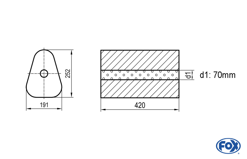 - 1x FOX Uni-Schalldämpfer dreieckig ohne Stutzen, Länge 420 mm