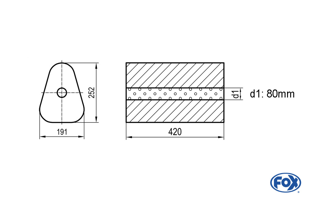 Der FOX Uni-Schalldämpfer in dreieckiger Ausführung ohne Stutzen überzeugt durch seine präzise Verarbeitung aus hochwertigem Edelstahl. Mit einer Abwicklung von 725 mm, den Maßen 191 x 252 mm und einem Außendurchmesser von 80 mm bietet dieser Endschalldämpfer eine robuste und langlebige Lösung für individuelle Auspuffanlagen. Die Gesamtlänge beträgt 420 mm.