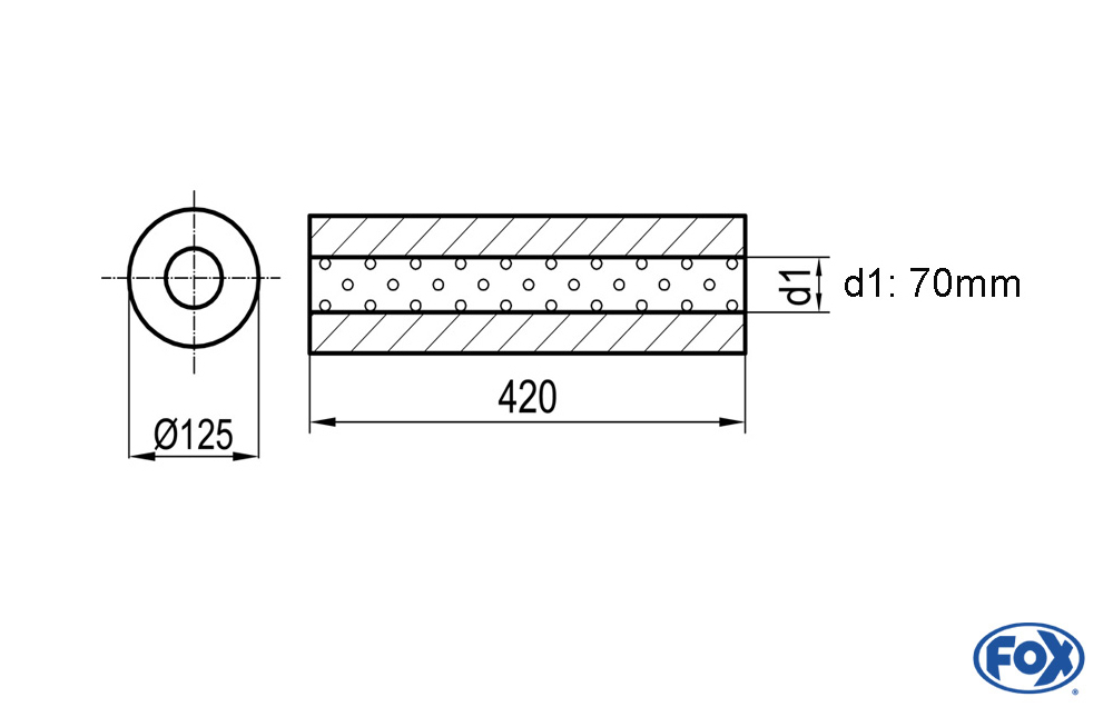 - 1x FOX Uni-Schalldämpfer rund ohne Stutzen Ø125 mm, Länge 420 mm