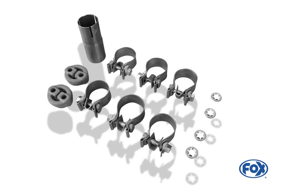 - 1x FOX Endschalldämpfer Edelstahl, quer Ausgang rechts/links