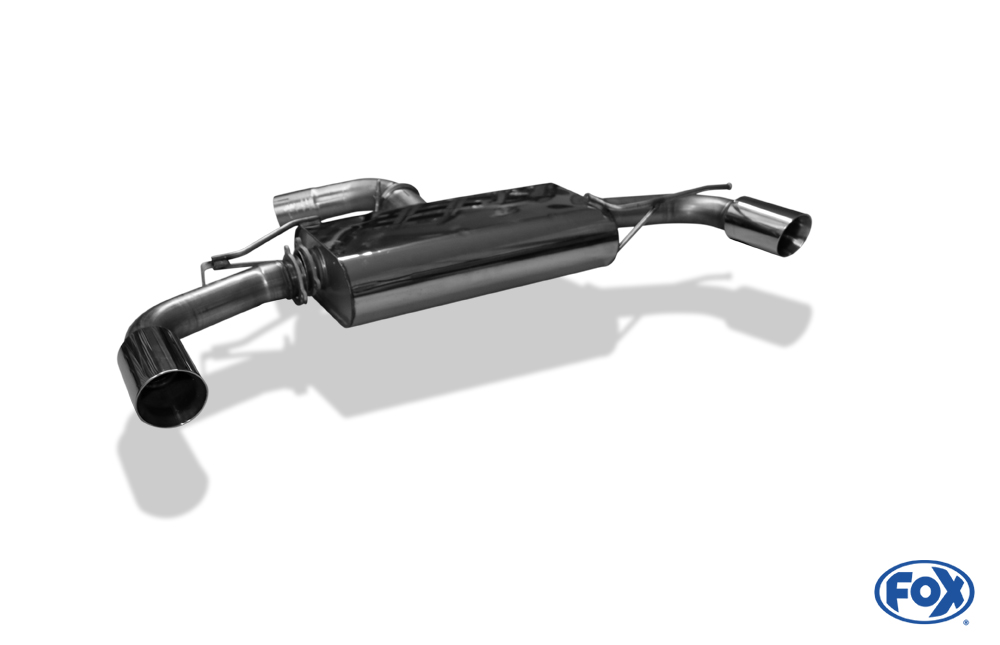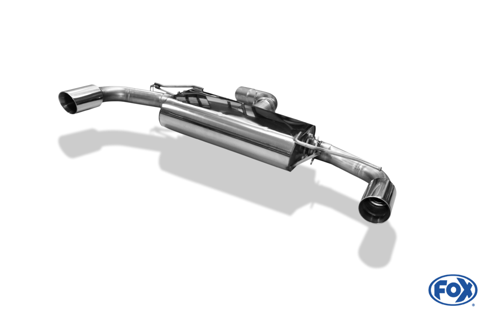 Der FOX Endschalldämpfer passend für VW Golf 6 GTI und Golf 6 GTI Cabrio sorgt für einen sportlich-dynamischen Klang und eine markante Heckoptik. Gefertigt aus hochwertigem Edelstahl überzeugt dieser sportliche Endschalldämpfer durch Langlebigkeit, Korrosionsbeständigkeit und präzise Passgenauigkeit. Die glänzend silber polierten Endrohre mit einem Durchmesser von 1x90 mm (Typ 25) pro Seite setzen stilvolle Akzente und betonen das sportliche Design Ihres Fahrzeugs. Dank EG-Gutachten erfolgt der Einbau eintragungsfrei. Der Schalldämpfer wird fahrzeugspezifisch entwickelt und geliefert inklusive Montagematerial, sodass eine einfache und sichere Montage gewährleistet ist.
