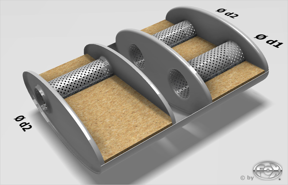 - 1x FOX Uni-Schalldämpfer oval zweiflutig mit Kammer – Variante 1
