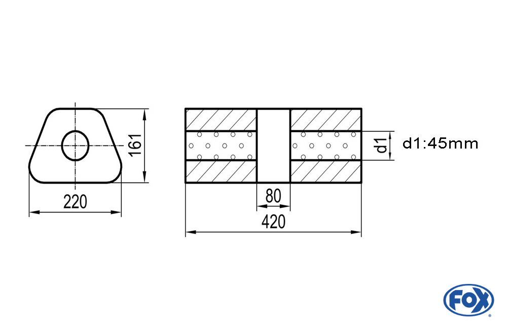 Der FOX Uni-Schalldämpfer trapez ohne Stutzen mit Kammer überzeugt durch seine hochwertige Edelstahlkonstruktion und präzise Fertigung. Mit den Abmessungen von 220x161mm, einem Anschlussdurchmesser d1Ø von 45mm und einer Gesamtlänge von 420mm eignet sich dieser Schalldämpfer ideal für individuelle Abgasanlagenprojekte. Der Dämpfer ist universell einsetzbar und bietet die Möglichkeit, ihn auf Wunsch in Sonderlängen oder nach spezifischer Skizze anzufertigen. So lässt sich eine optimale Anpassung an Ihr Fahrzeug oder Ihr Projekt realisieren.