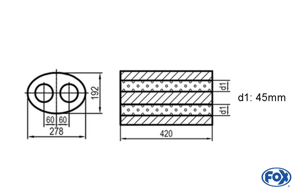 Der FOX Uni-Schalldämpfer oval zweiflutig überzeugt durch seine hochwertige Verarbeitung aus robustem Edelstahl und bietet eine langlebige Lösung für individuelle Abgasanlagen. Mit einer Abwicklung von 754 mm, den Maßen 278 x 192 mm, einem Rohranschluss d1Ø 45 mm und einer Gesamtlänge von 420 mm ist dieser Schalldämpfer vielseitig einsetzbar und universell passend für zahlreiche Fahrzeuganwendungen. Die angegebenen Längen und Aufbauarten entsprechen dem FOX Standardprogramm. Auf Wunsch kann der Schalldämpfer auch in individueller Länge oder nach Ihrer technischen Skizze gefertigt werden – ideal für Sonderanfertigungen oder spezielle Tuningprojekte. Für ein persönliches Angebot wenden Sie sich bitte per Produktanfrage oder E‑Mail an info@fox-sportauspuff.de.