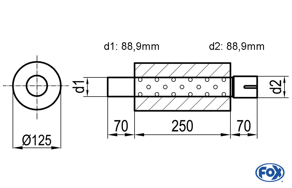 Weiterführende Links zu "FOX Uni-Schalldämpfer rund Edelstahl Ø125mm Länge 250mm"