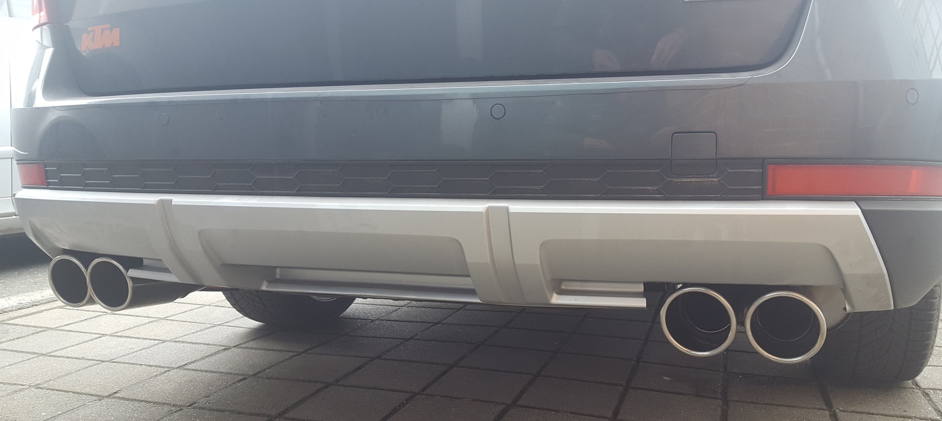 - Handpolierte Endrohre in Hochglanzoptik (2x90 mm Typ 16)