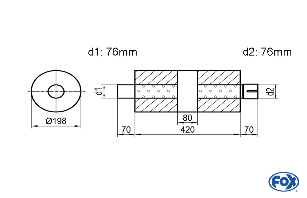 - 1x FOX Uni-Schalldämpfer rund Ø198 mm, Länge 420 mm