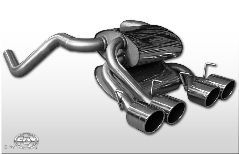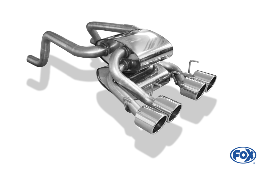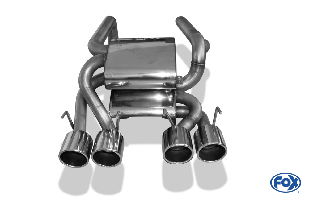 Der FOX Endschalldämpfer passend für Corvette C6 überzeugt durch seine hochwertige Verarbeitung aus rostfreiem Edelstahl. Das mittig platzierte 4x100 Endrohr sorgt für einen sportlich-markanten Look und optimierten Abgasfluss. Alle Endrohre sind in glänzendem Silber gehalten und werden per Hand auf Hochglanz poliert – ideal, um die sportliche Linie Ihres Fahrzeugs zu betonen.