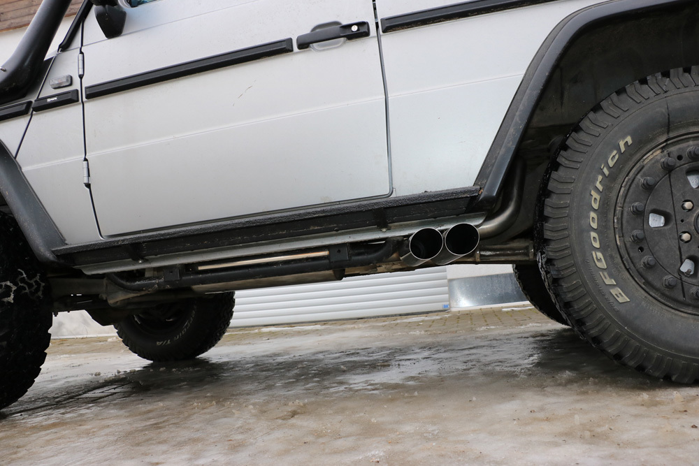 Der FOX Endschalldämpfer passend für Mercedes G-Klasse Cabrio 463 bietet sportlichen Sound und hochwertige Optik in einem Produkt. Gefertigt aus langlebigem Edelstahl überzeugt der Endschalldämpfer durch präzise Handarbeit und polierte Endrohre in glänzendem Silberfinish. Der seitliche Ausgang mit zwei Endrohren im Durchmesser von 80 mm (Typ 14) sorgt für eine markante Optik und ein sportliches Fahrerlebnis. Der Rohrquerschnitt von 63,5 mm gewährleistet optimale Abgasführung und unterstützt die Leistungsentfaltung des Motors. Dank EG-Gutachten ist der Einbau eintragungsfrei – ein klarer Vorteil für unkompliziertes Tuning. Im Lieferumfang ist sämtliches Montagematerial enthalten, sodass Sie den Einbau schnell und sicher durchführen können.