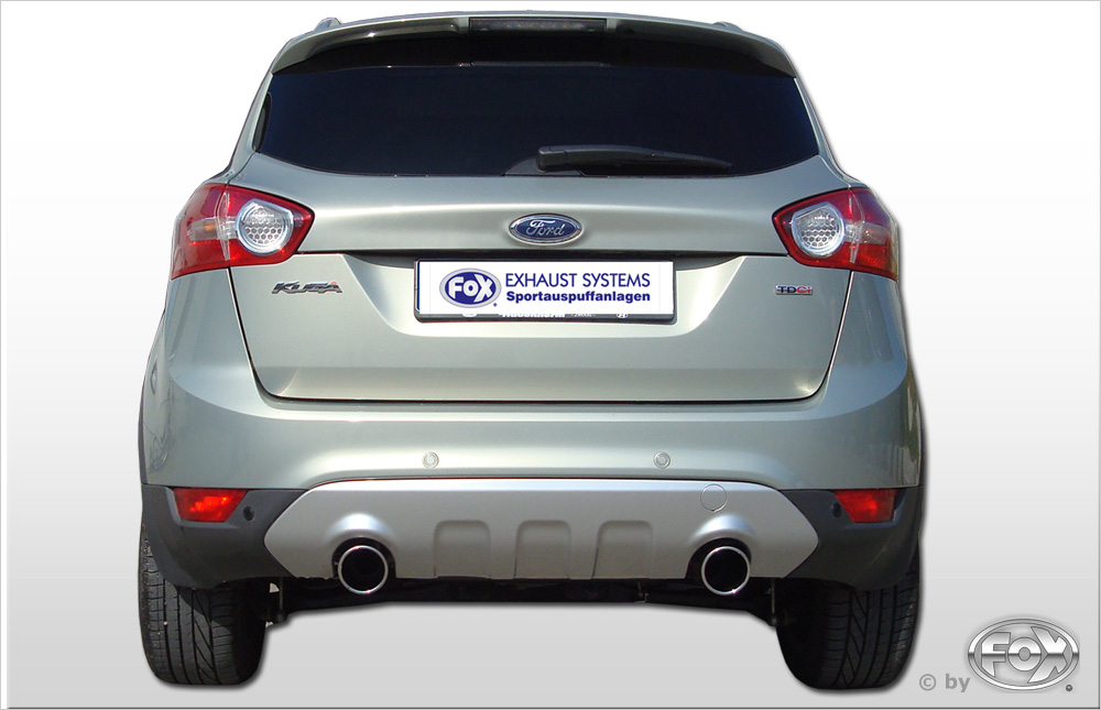 Der hochwertige FOX Endschalldämpfer passt perfekt für den Ford Kuga der ersten Generation ab Baujahr 2008 und überzeugt durch seine sportliche Optik und den kernigen Sound. Hergestellt aus robustem Edelstahl bietet dieser Endschalldämpfer langlebige Performance und Korrosionsbeständigkeit. Die glänzend silbernen Endrohre sind handpoliert auf Hochglanz und sorgen für ein edles Erscheinungsbild am Heck Ihres Fahrzeugs.