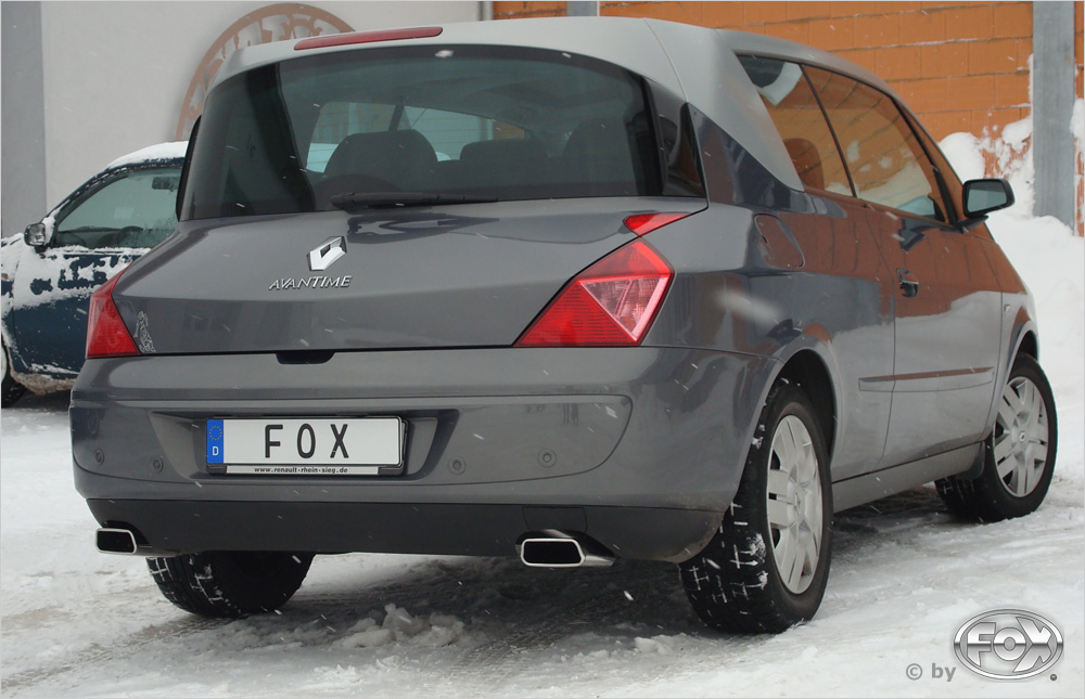 Dieser hochwertige FOX Endschalldämpfer aus Edelstahl ist speziell passend für den Renault Avantime entwickelt. Dank präziser Verarbeitung und hochwertigem Material sorgt er für eine sportliche Optik, verbesserten Klang und lange Haltbarkeit. Die beidseitigen Ausgänge vom Typ 59 (145x65 mm, rechts/links) sind handpoliert und glänzen in edlem Silber. Durch das mitgelieferte Montagematerial ist die Installation einfach und sicher. Der Rohrquerschnitt von 63,5 mm sorgt für optimalen Abgasfluss und eine dynamische Performance. Das Produkt verfügt über ein EG-Gutachten und ist damit eintragungsfrei.