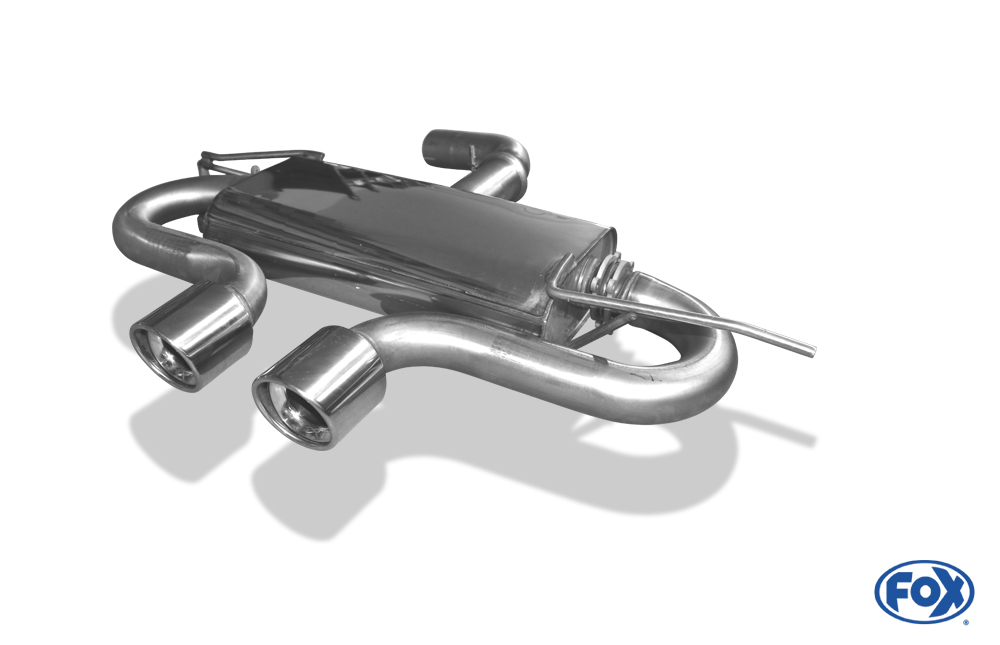Der FOX Endschalldämpfer passend für VW Golf V TSI überzeugt durch sein hochwertiges R32-Design mit mittigem Ausgang (2x100 mm Endrohre). Gefertigt aus langlebigem Edelstahl sorgt dieser Sportauspuff für verbesserten Abgasfluss, sportlichen Sound und eine markante Optik am Heck Ihres Fahrzeugs. Dank präziser Passform für das 70-mm-System ist eine problemlose Montage gewährleistet. Die glänzend polierten Endrohre werden in Handarbeit auf Hochglanz gebracht und verleihen dem Fahrzeug ein exklusives Finish. Durch das beiliegende EG-Gutachten ist keine zusätzliche Eintragung erforderlich – montieren und genießen Sie den sportlichen Look.
