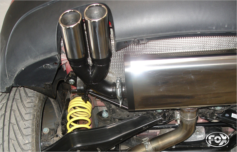 Der hochwertige FOX Endschalldämpfer 2x76 Typ 17 wurde speziell für den Einsatz an sportlichen Fahrzeugen entwickelt und überzeugt durch seine erstklassige Verarbeitung aus Edelstahl. Das System bietet nicht nur eine sportlich dynamische Optik, sondern auch einen satten, kernigen Sound für Ihr Fahrzeug. Dank der polierten, glänzend silbernen Endrohre entsteht ein auffälliger und zugleich eleganter Look, der sich perfekt in das Gesamtbild des Fahrzeugs einfügt.