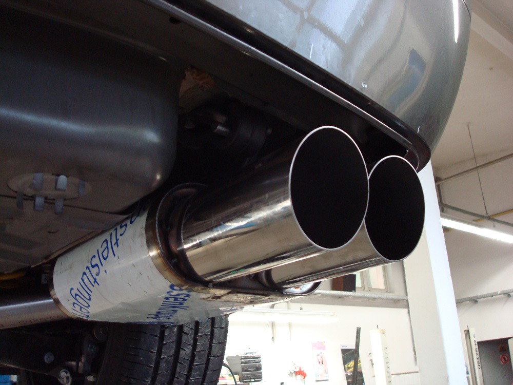 • Hochglanzpolierte Endrohre in 2x100 mm Ausführung