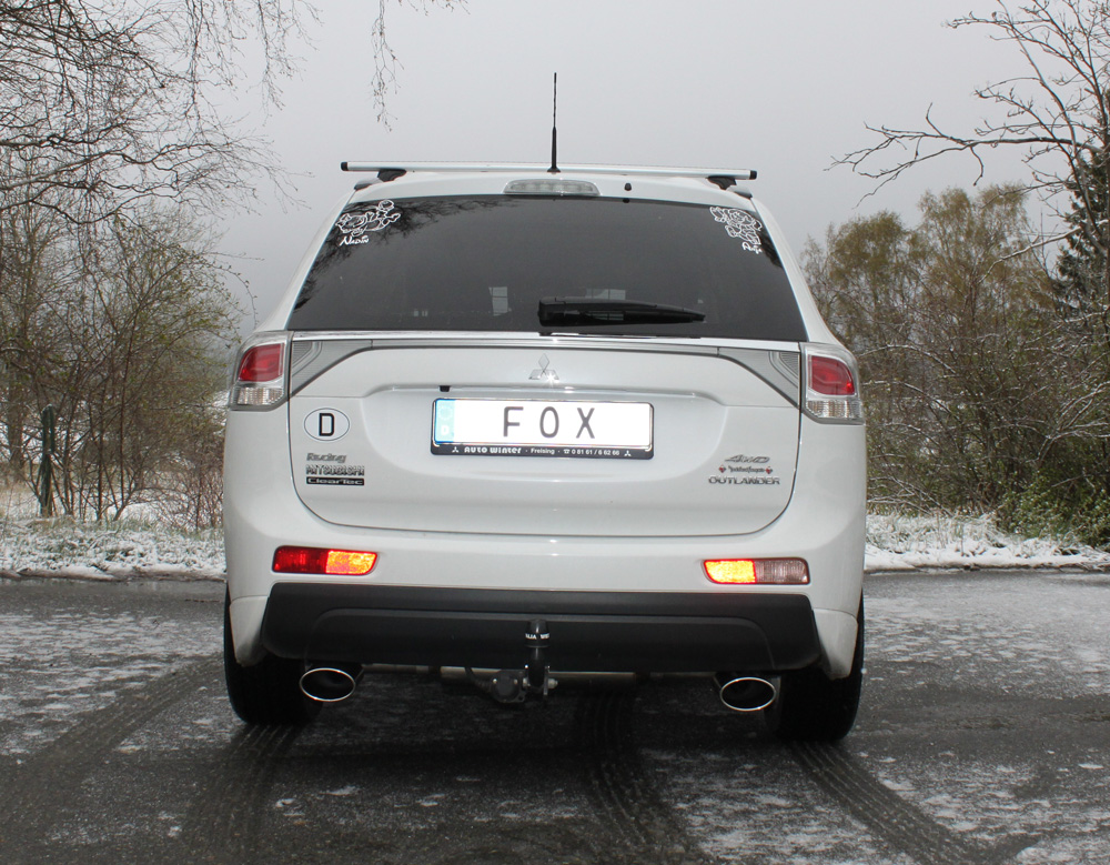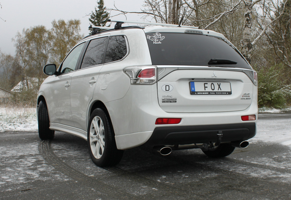 Der hochwertige FOX Endschalldämpfer aus Edelstahl wurde speziell passend für Mitsubishi Outlander III GG/GF 4WD entwickelt. Die quer verlaufende Bauweise mit Doppel-Endrohr-Ausgang rechts/links im Format 140x90 mm (Typ 32) verleiht Ihrem Fahrzeug nicht nur einen markanten sportlichen Look, sondern sorgt zudem für eine verbesserte Abgasführung.