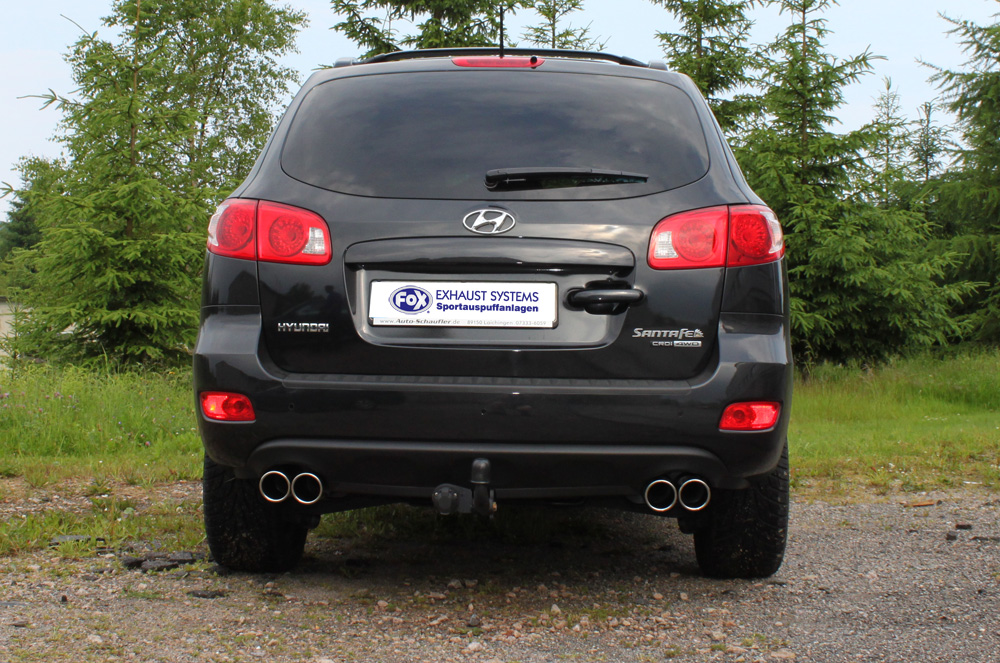 Der FOX Endschalldämpfer passend für Hyundai Santa Fe CM 4x4 überzeugt durch hochwertige Verarbeitung aus Edelstahl und sportlich-markanten Sound. Die Anlage ist mit zwei Endrohren im Typ 16 (je Ø 90 mm) ausgestattet und bietet eine perfekte Kombination aus Langlebigkeit, Leistung und stilvollem Design. Dank EG-Gutachten ist die Montage eintragungsfrei, wodurch Sie den sportlichen Klang und das ansprechende Erscheinungsbild Ihres Fahrzeugs ganz legal genießen können.