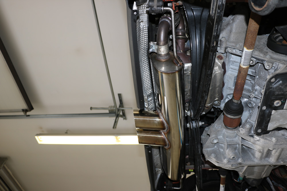 - Sportlicher Edelstahl-Endschalldämpfer mit mittigem 2x80 mm Ausgang