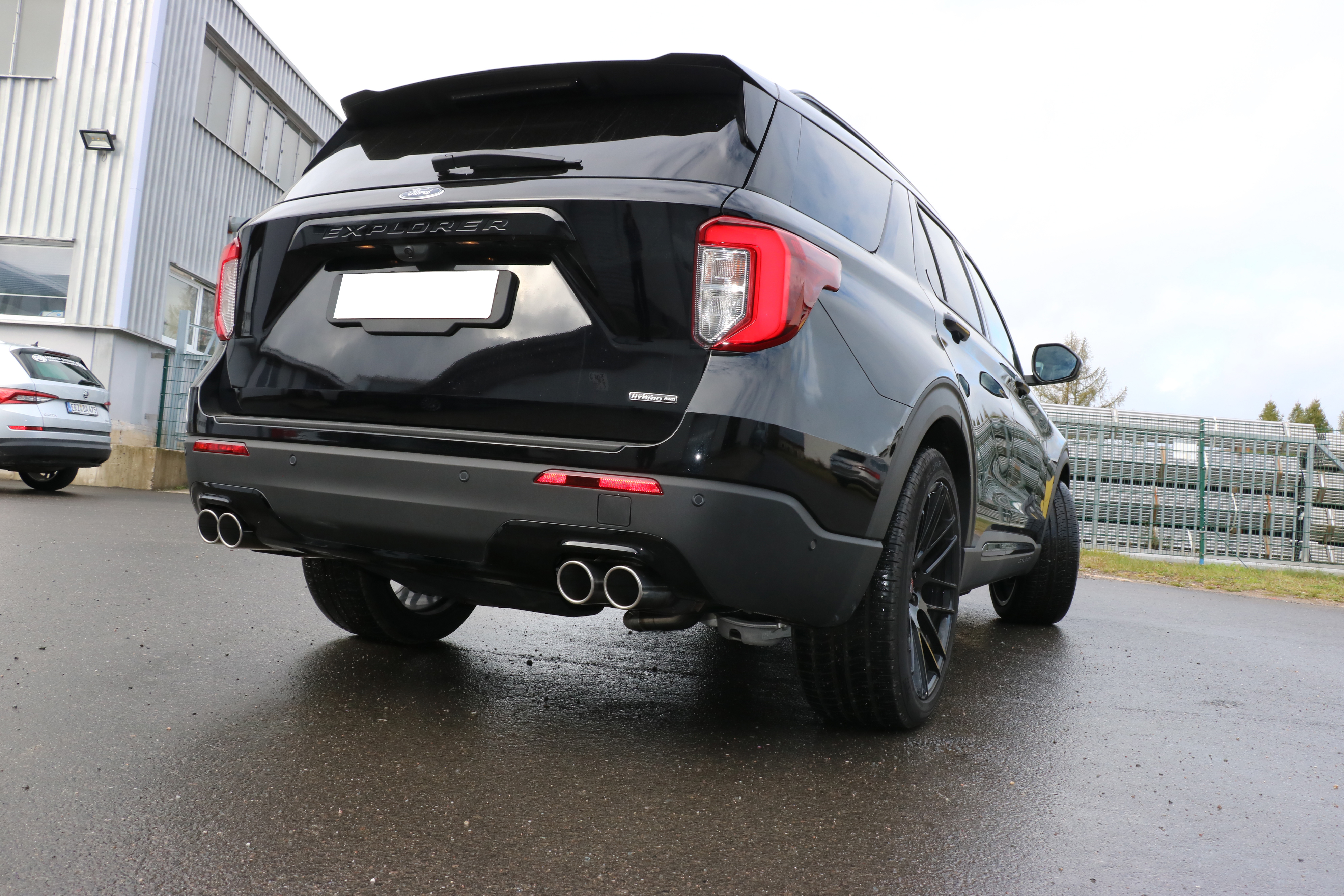 Der hochwertige FOX Endschalldämpfer passend für Ford Explorer Typ WUJ überzeugt durch erstklassige Verarbeitung aus langlebigem Edelstahl und präzise Passgenauigkeit. Dank der doppelseitigen Ausführung mit je 2 Endrohren im Design Typ 16 (2x90 mm) sorgt der Sportauspuff für eine sportliche Optik und eine deutliche Klangverbesserung. Alle Endrohre werden von Hand auf Hochglanz poliert und bieten eine glänzend silberne Oberfläche, die perfekt zum Stil des Fahrzeugs passt.