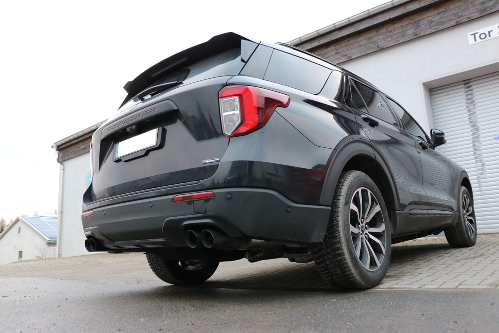 Der FOX Endschalldämpfer passend für Ford Explorer Typ WUJ überzeugt durch hochwertige Verarbeitung aus robustem Edelstahl. Die beidseitigen Endrohre im Format 2x90 mm Typ 25 verleihen dem Fahrzeug eine markante Optik und sportlichen Sound. Die schwarze Emaillierung sorgt für einen edlen Look, gleichzeitig schützt die Materialauswahl vor Korrosion und bietet eine lange Lebensdauer.